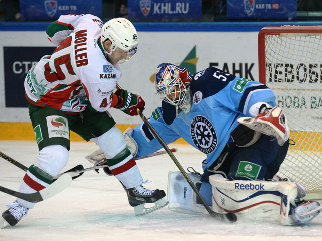 Новосибирская "Сибирь" на своей площадке со счетом 0:1 уступила казанскому "Ак Барсу" в овертайме четвертого полуфинального матча плей-офф Континентальной хоккейной лиги (КХЛ). Единственную шайбу на 68-й минуте чистого времени забросил Оскар Меллер.