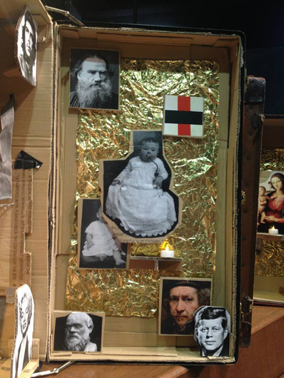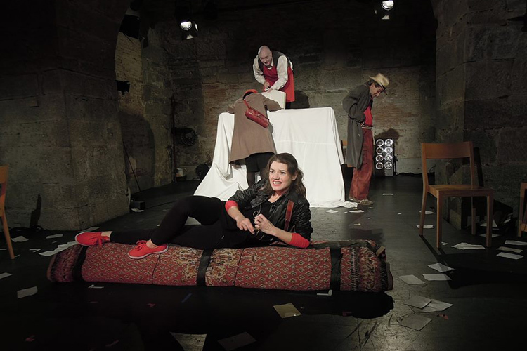 Лейтмотив спектакля — персонажи с чемоданами, те самые пассажиры Циммервальд—Петроград, приехавшие делать историю: превращать империалистическую войну в войну гражданскую. В водовороте сценок-скетчей гротескные маски сменяют одна другую. Уже не понять, где тут сам Ленин, а где «Игорь Грач-Грачевский, радикальный экоактивист, притворяющийся ностальгирующим социалистом-реконструктором, он же В.И. Ленин». На Папашу Ягги сваливается и «Фрида Фогельсон, притворяющаяся орнитологом, она же Фрида Кало», и «Стелла Уткина, секретарь И.Н. Лебедя, она же Серп», и сам И.Н. Лебедь, «орнитолог, действительный член Академии наук, он же Молот», и забальзамированная мумия Ленина, и еще одна Баба-Яга — его жена. С таким количеством персонажей и без того рыхлая архитектоника пьесы грозит совсем обрушиться под натиском актерских этюдов, музыкальных номеров и шуток на злобу дня. Должно быть, «педагогическая» направленность режиссуры Корогодских (и Зиновия, и Данилы Зиновьевича) предполагает момент свободы: каждый из участников получает возможность высказаться — в монологе ли, скетче или визуальной зарисовке. Так, например, Мона Петри и Светлана Смирнова (краевед Аннэли и радикал Маша Чиж) разыгрывают шикарный вставной номер с сигаретой, а Мария Срогович и Артем Томилов — этюд, посвященный «отношениям» нарисованных на картоне серпа и молота, точно пришедший из мастерской актеров-кукольников.
