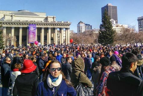 В воскресенье, 5 апреля, на площади перед Новосибирским государственным академическим театром оперы и балета (НГАТОиБ) состоялся митинг «За свободу творчества». По разным оценкам, в нем участвовало 2,5–3 тысячи человек.