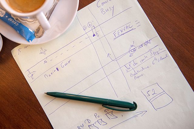 Это я сейчас резюмировал все, что мне стало известно из отчетов французских расследователей. (Вервель берет лист бумаги, ручку и явно не в первый раз набрасывает схему взлетной полосы и ведущих к ней рулежных дорожек.) Вот здесь Мартыненко потерялся… Здесь проводили ремонтные работы электрики… Вот здесь пилот первый раз увидел машину. Вот снегоуборщик ушел, а потом вернулся, чтобы встать ровно перед самолетом.