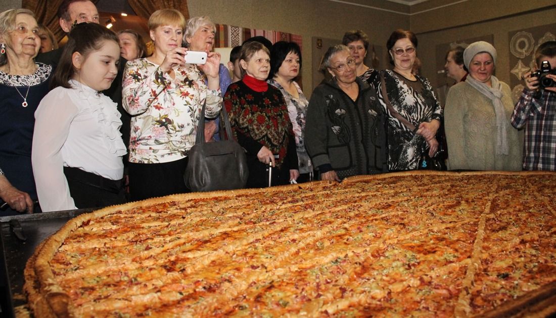 5 апреля в Воркуте отметили День вареника. В честь праздника работники местного хлебокомбината испекли 25-килограммовую пиццу в форме вареника. Ее размеры — 1,2 на полтора метра.