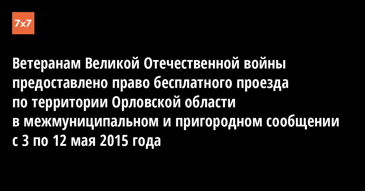Ветеранам Великой Отечественной войны предоставлено право бесплатного проезда по территории Орловской области в межмуниципальном и пригородном сообщении с 3 по 12 мая 2015 года