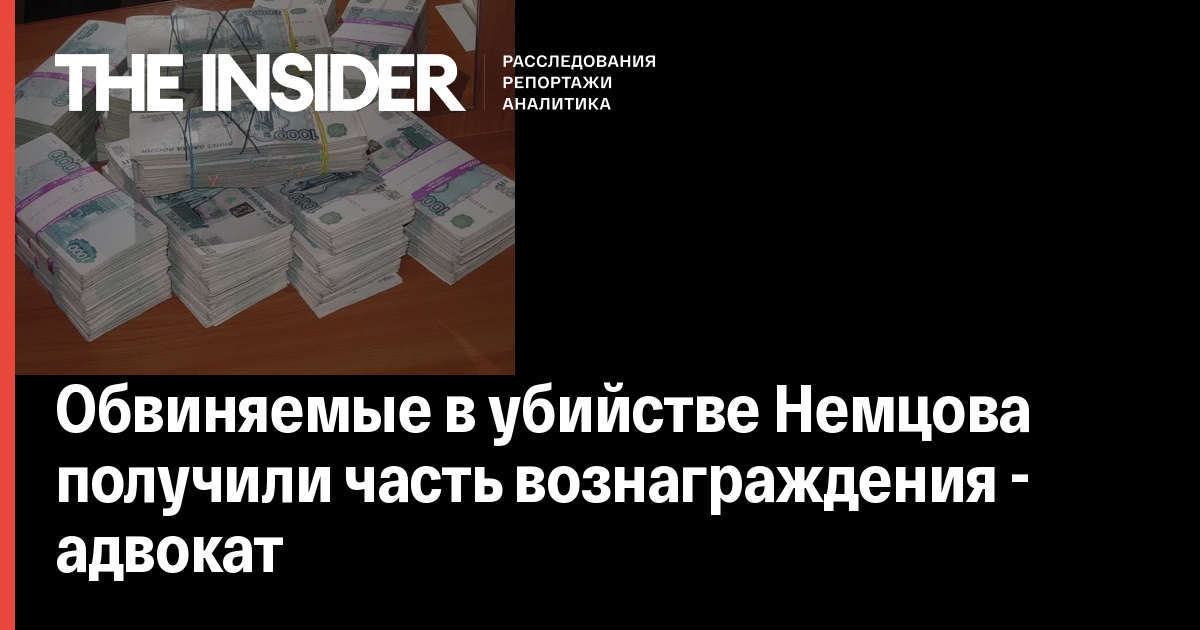 Предполагаемые исполнители убийства политика Бориса Немцова получили часть вознаграждения, пишет «Интерфакс» со ссылкой на Вадима Прохорова, адвоката семьи Немцова.