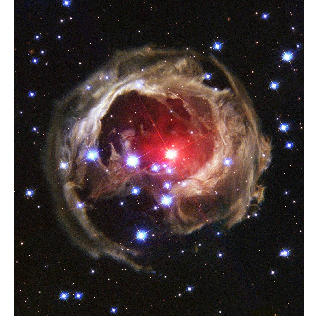 Второе место заняла фотография звезды V838 Единорога со световым эхом.