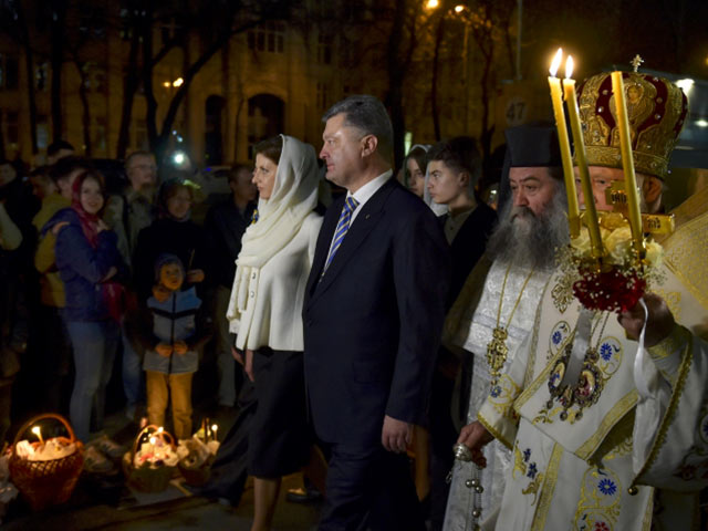В пасхальную ночь с субботы на воскресенье президент Украины Петр Порошенко с женой Мариной, детьми Евгенией, Александрой и Михаилом принял участие в праздничных богослужениях в нескольких храмах Киева.
