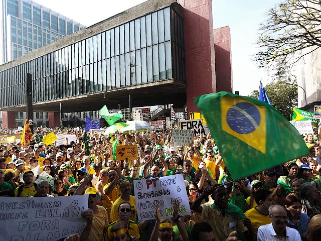 Как и в предыдущий раз, митингующие требовали отставки президента страны Дилмы Русеф и протестовали против коррупции в государственной нефтяной компании Petrobras и других госкомпаниях.
