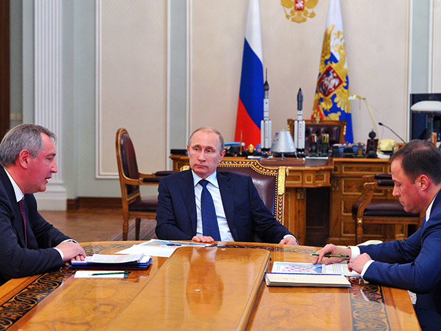Глава государства встретился с вице-премьером Дмитрием Рогозиным и главой Роскосмоса Игорем Комаровым, они обсуждали проблемы строительства космодрома Восточный. Путин потребовал уложиться в сроки госпрограммы.
