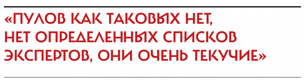 Олег Матвейчев, бывший сотрудник администрации президента, профессор Высшей школы экономики, уверен, что в АП ему доверяют: «Мы можем объяснять людям некоторые моменты, которые непонятны населению или журналистам. Все знают, что меня можно рекомендовать, и вряд ли я что-то такое скажу. Пулов как таковых нет, нет определенных списков экспертов, они очень текучие. Делается какое-то мероприятие, приглашают людей, которые в этой теме засветились. Например, Константин Симонов — специалист по энергетическим вопросам. Если региональная политика — позовут меня. Если международные отношения, то без Никонова не обойдется. И на совещаниях мы получаем разъяснения, высказываем критику — они бывают раз-два в месяц, чтобы обсудить, сверить позиции, так сказать, их проводят разные департаменты. Это нормальный процесс».