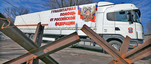 Гуманитарный конвой для жителей юго-востока Украины прибыл в Донецк, 27 февраля 2015 года