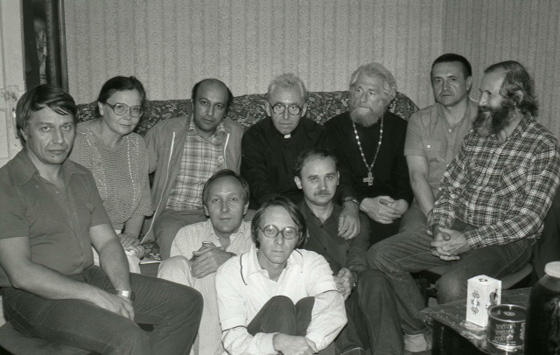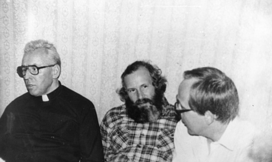© из архива Международного Мемориала Проводы в эмиграцию о. Альфонсаса Сваринскаса. Август 1988 г. Слева направо: Альфонсас Сваринскас, Лев Тимофеев, Алексей Смирнов — По счастью, вам сидеть пришлось не очень долго...