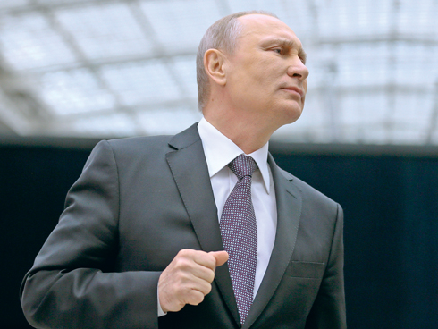 Владимир Путин после «Прямой линии» в Гостином Дворе, Москва, 16 апреля 2015 года