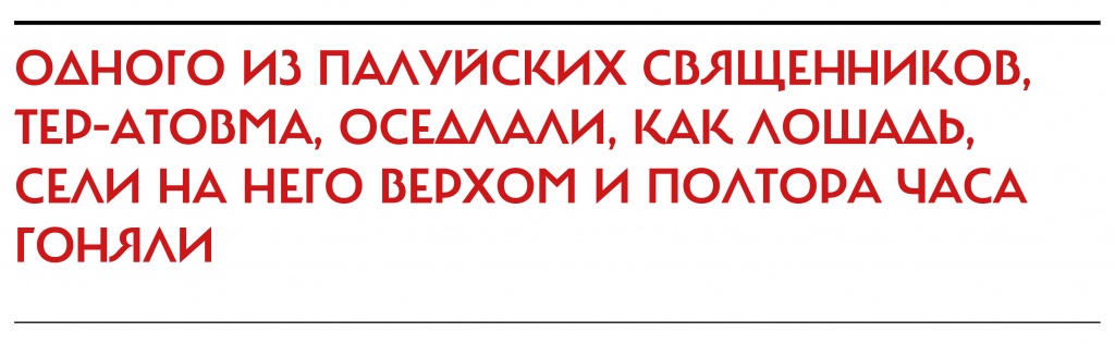 Одного из палуйских священников, Тер-Атовма, оседлали, как лошадь, сели на него верхом и полтора часа гоняли. Его довели до изнеможения и затем потребовали, чтобы он выдал тайны и указал, где тайник с оружием. Тер-Атовм стойко и твердо отпирался, тогда его подковали и распяли… Под тяжестью этих мук он испустил дух.