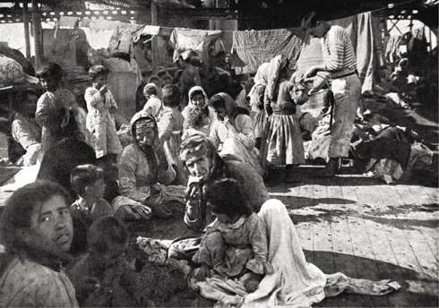 Беженцы-армяне в лагере, оборудованном на борту спасшего их от гибели французского крейсера, 1915 год