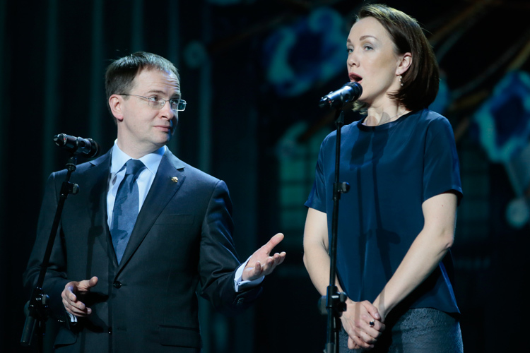 Что и говорить, министр на масочной церемонии был иезуитски обложен со всех сторон врагами. Прямо перед ним сцену покинул режиссер Михаэль Тальхаймер, на немецком языке сказавший все, что он думает о свободе творчества (и на следующий день его процитировали западные информагентства, упомянув также об одобрительной реакции зала). Перед тем Ингеборга Дапкунайте очаровательно и колко напомнила о мольеровском «Тартюфе», запрещенном 350 лет назад под влиянием религиозной организации «Общество Святых Даров». И где теперь то «Общество», а где «Тартюф»? Рядом с министром на сцену придумали поставить актрису Дарью Мороз, которая, между прочим, — жена режиссера Богомолова. Да и название вручаемой премии в руках человека, сумевшего в одночасье расшатать два вполне процветающих оперных театра страны — Новосибирский и Михайловский, — выглядело как-то издевательски.