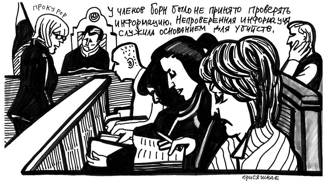 На протяжении всего процесса в суде работала художник Виктория Ломаско. «Медуза» представляет ее графический рассказ о том, как судили членов «Боевой организации русских националистов». Комментарии к рисункам подготовил специальный корреспондент «Медузы» Андрей Козенко, также следивший за процессом.