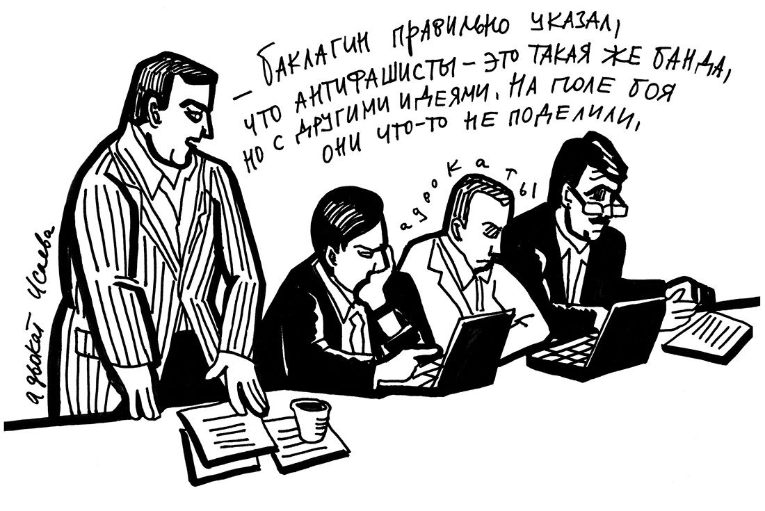 Еще одна оправдательная концепция защиты заключалась в том, что современные «антифашисты» — это не совсем то, что мы видели в фильмах про Великую Отечественную. Это агрессивная субкультура, с которой националисты воевали, в том числе, и на улицах. Звучало вполне правдоподобно, но все равно не давало ответа на вопрос — зачем нужно было совершать убийства.