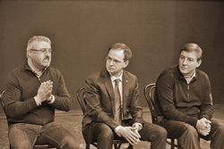 Новохижин. «Сегодня на встрече с министром был задан вопрос: «На вас давил кто-нибудь?» «Да что вы! – дружно говорили актёры при министре культуры. – Какое давление?» Но у нас была одна задача: чтобы Мединский разрешил у нас художественный совет.
