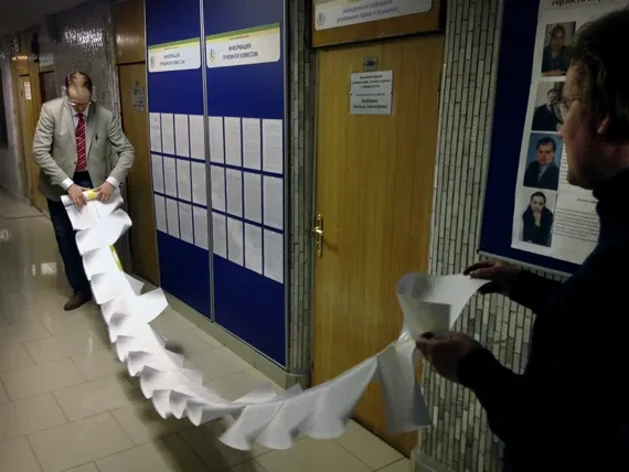 РУДН. Активисты «Диссернета» с рулоном доказательств. Фото автора