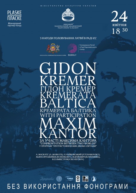 В Одессе, впервые на территории Украины, 24 апреля будет сыграна новая программа оркестра молодых музыкантов балтийских государств "Кремерата Балтика" под руководством скрипача и неравнодушного человека Гидона Кремера. Программа –на основе музыки "Картинок с выставки" Модеста Мусоргского и произведений современных композиторов – носит название "Россия – лица и маски". Название предложено писателем и художником Максимом Кантором, картины которого планируется демонстрировать на экране в синтезе с музыкой.