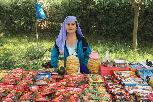 Beyond the first stalls of the bazaar where they sell flatbread, meat, fruits and herbs, there are closed pavilions with small poorly-lit shops inside. Pipes and wires stick out of the walls. Here, they sell CDs with national pop music, and there’s also a small door to the “rear market” — the domain of the cannabis dealers and currency changers.