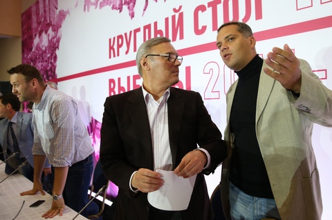 Фото: Россия. Москва. 18 апреля 2015. Оппозиционер Алексей Навальный, сопредседатель партии РПР-ПАРНАС Михаил Касьянов и председатель партии "Демократический выбор" Владимир Милов (слева направо) после конференции "Выборы 2015 – 2016: повестка для оппозиции". Антон Новодережкин/ТАСС