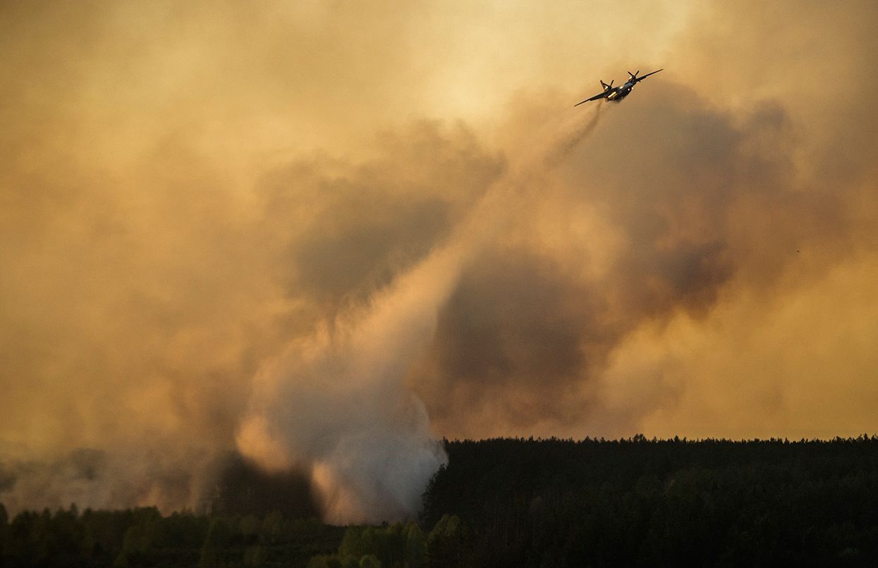 В зоне отчуждения загорелись сотни гектаров леса. Фотогалерея
