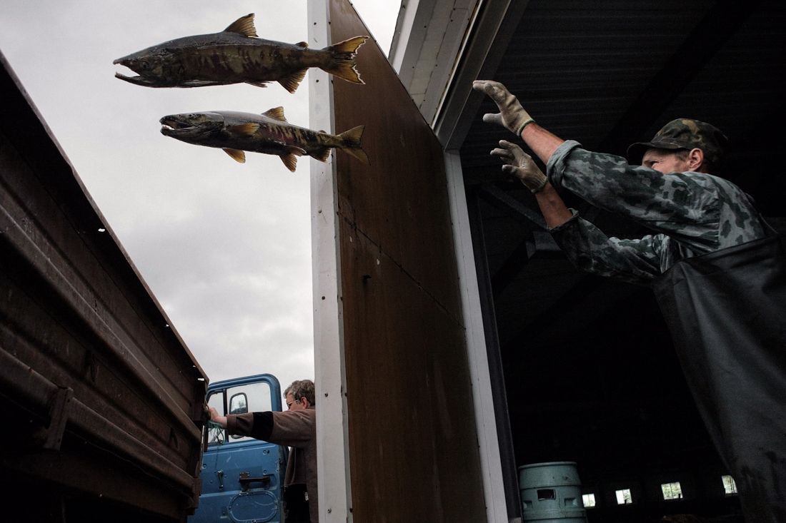 На рыбоводном заводе подрощенных (семь сантиметров) мальков лосося выпускают в Тихий океан. От берегов Камчатки мальки плывут к берегам Америки, по пути взрослея. Войдя в возраст, спешат назад, повинуясь инстинкту, который называется homing. Те немногие, которым удается ускользнуть от браконьеров, прибывают на родной завод. На заводе из самок выдавливают икру и складывают ее в тазики. Самцов бьют дубинкой по голове, разрезают живот и поливают молоками тазики с икрой. Потом самцов и самок грузят в машину и отправляют на переработку — в пищу они не пригодны. Из оплодотворенной икры рождаются мальки. Мальков (семь сантиметров) выпускают в Тихий океан. От берегов Камчатки мальки плывут к берегам Америки, по пути взрослея. В природе все происходит ровно так же, разве что некому взвесить и измерить малька, ударить самца по голове дубиной и погрузить тела в машину. Такая жизнь.