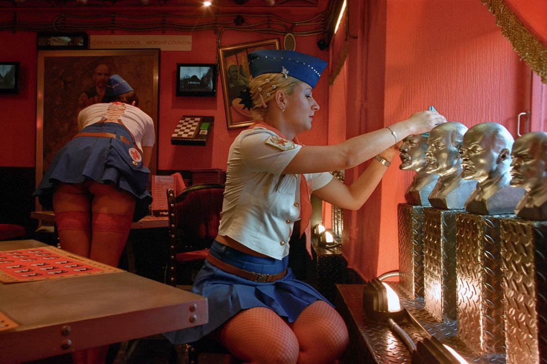 Работали в Москве: в галерее Гельмана фотографировали дуэт художников «Синие носы» — ребята снимали для каких-то своих проектов двойника Сталина. Познакомились с двойником — бывшим мичманом Северного флота. Раньше он кормился, фотографируясь с гостями столицы на Красной площади, но по пьяни подрался с Лениным, а мимо проходившие телевизионщики драку сняли и показали по телевизору. За это фэсэошники вождей от стен Кремля прогнали. Ленин переместился на Арбат, а наш знакомый — на Ленинские горы. Сняли мичмана за работой. Оказалось, на Сталине паразитирует человек, который, пользуясь неосведомленностью простого народа, выдает себя за двойника императора Александра I, хотя на него совсем не похож. Похожий на Сталина мичман, будучи человеком скромным, свои услуги навязывать стесняется. За него это делает Александр I Благословенный — громко кричит и балагурит, зазывая клиентов сфотографироваться со Сталиным, а потом потихоньку и сам примазывается.