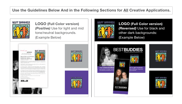 Началась работа над дизайном. Стиль движения «Лучшие друзья» хорошо известен во всем мире и регулируется международным руководством по фирменному стилю «Best Buddies Design Guidelines».