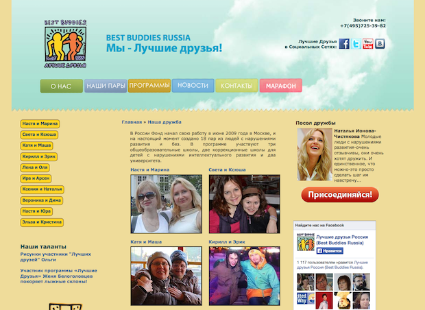 С 2009 года фонд «Лучшие друзья Россия» проводит программы, направленные на включение в общество людей с ментальной инвалидностью через общение и дружбу, на развитие лидерских качеств у людей с нарушениями развития и обеспечение их занятости.