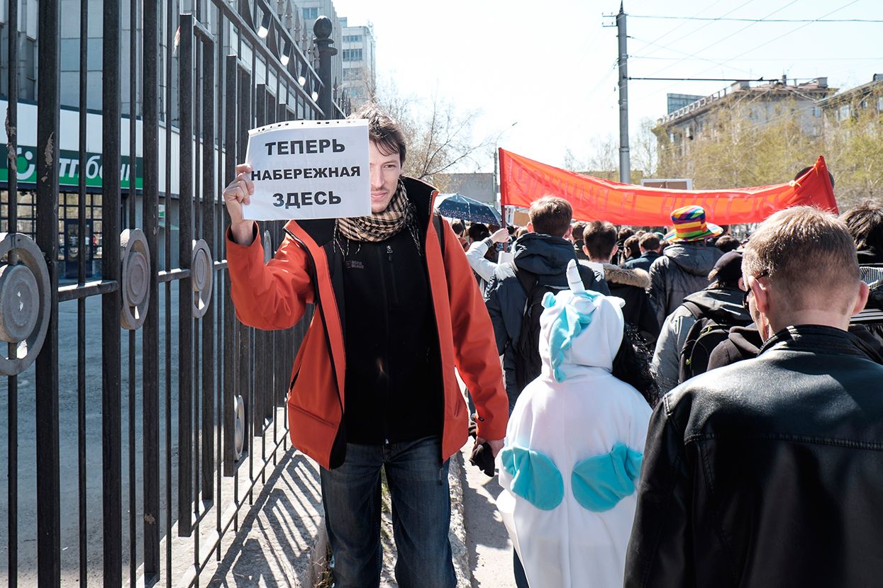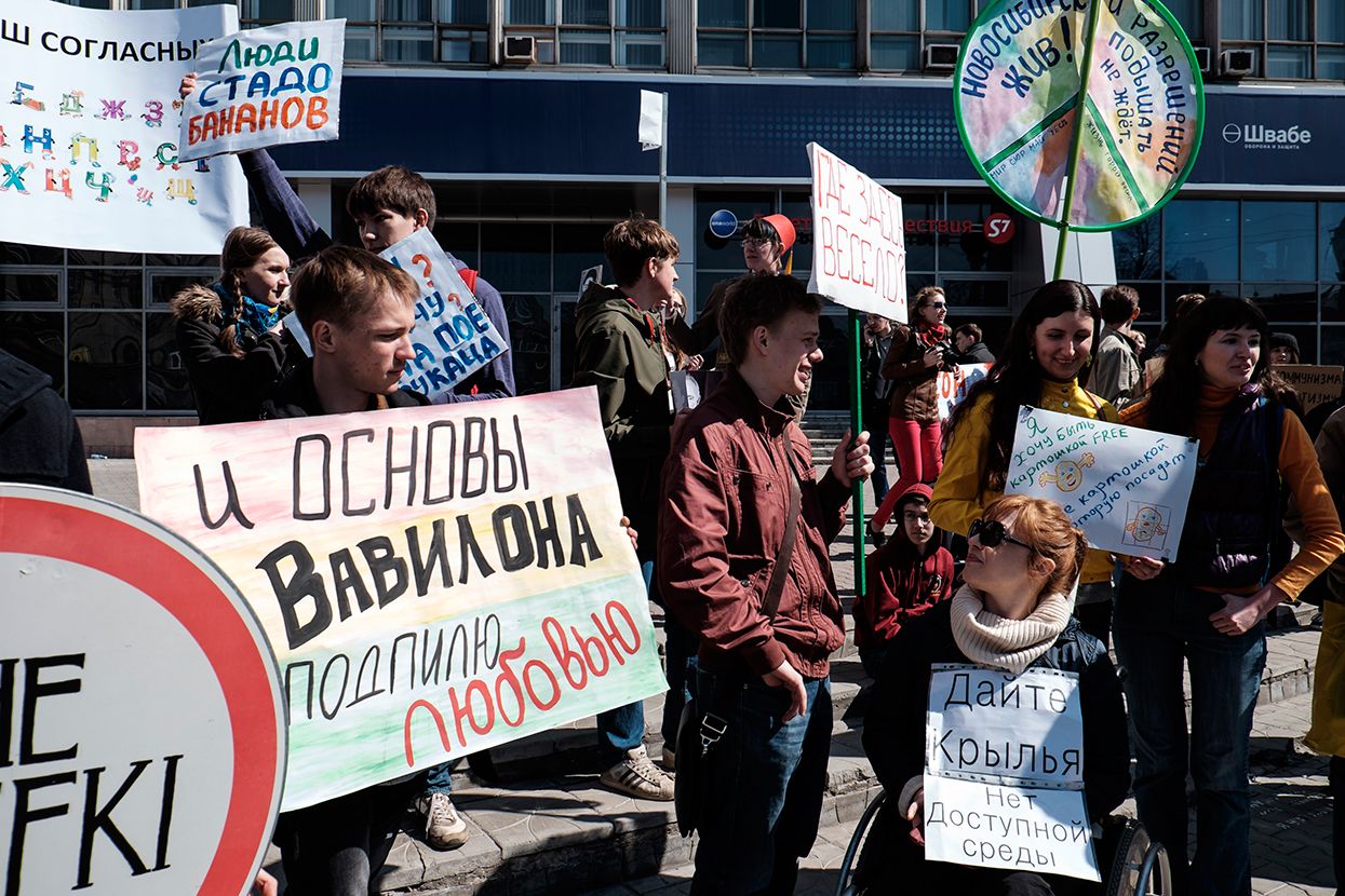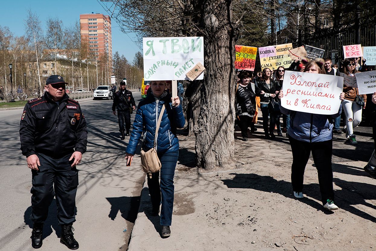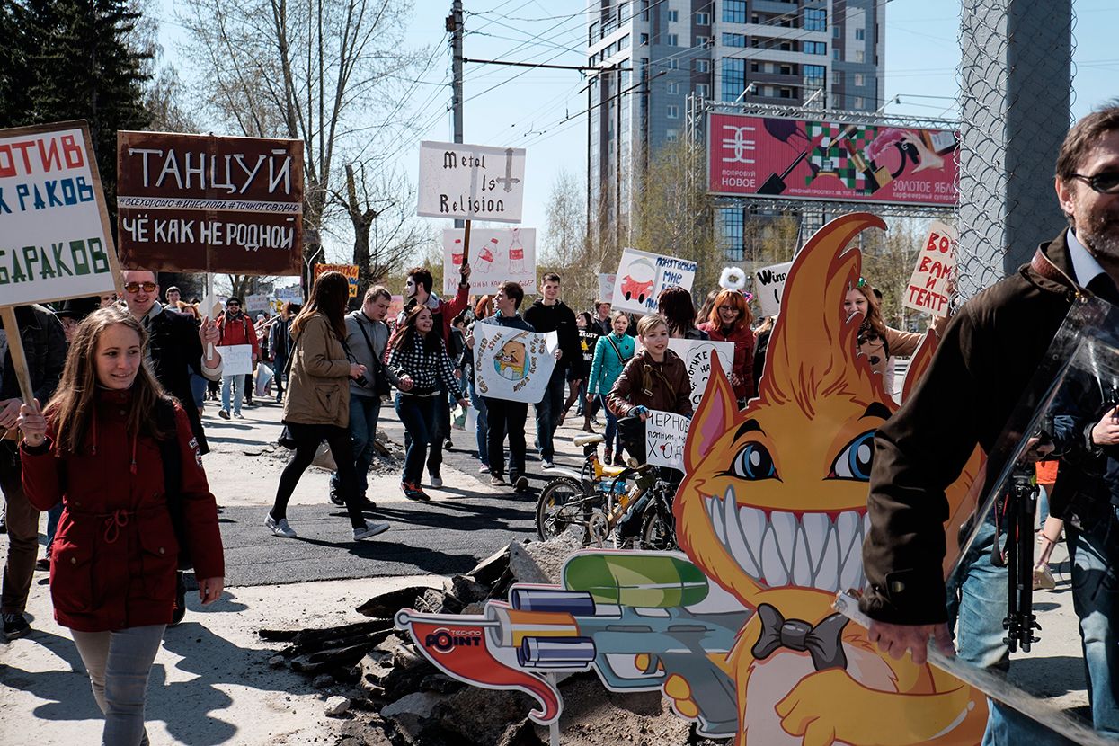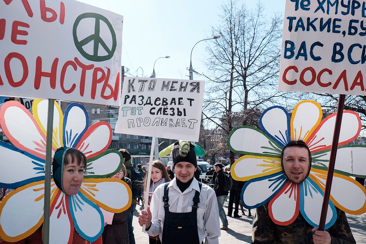 Фотограф Антон Карлинер по просьбе «Медузы» снял шествие в Новосибирске.