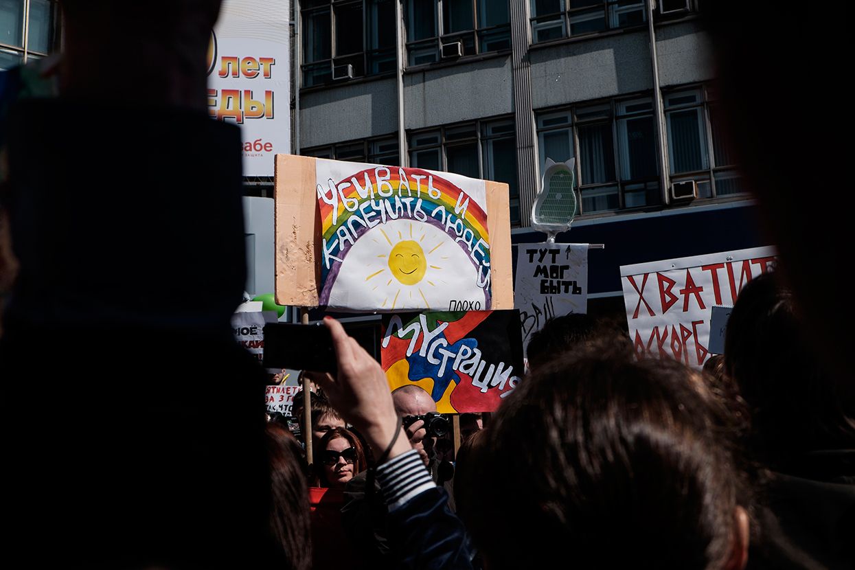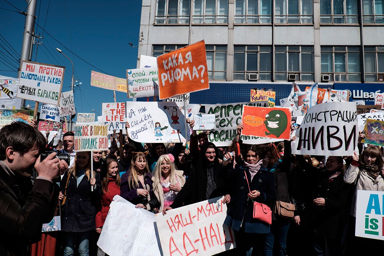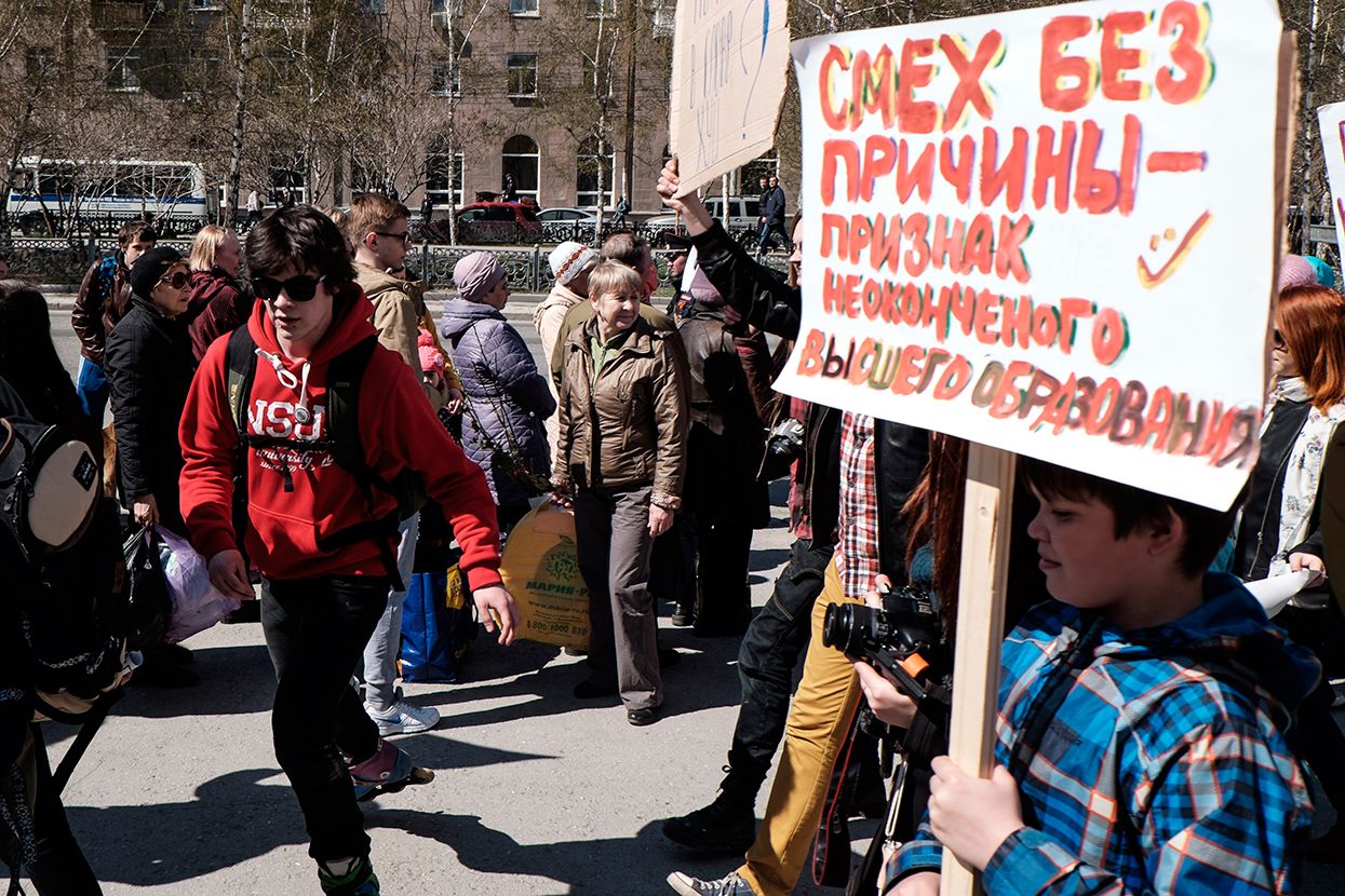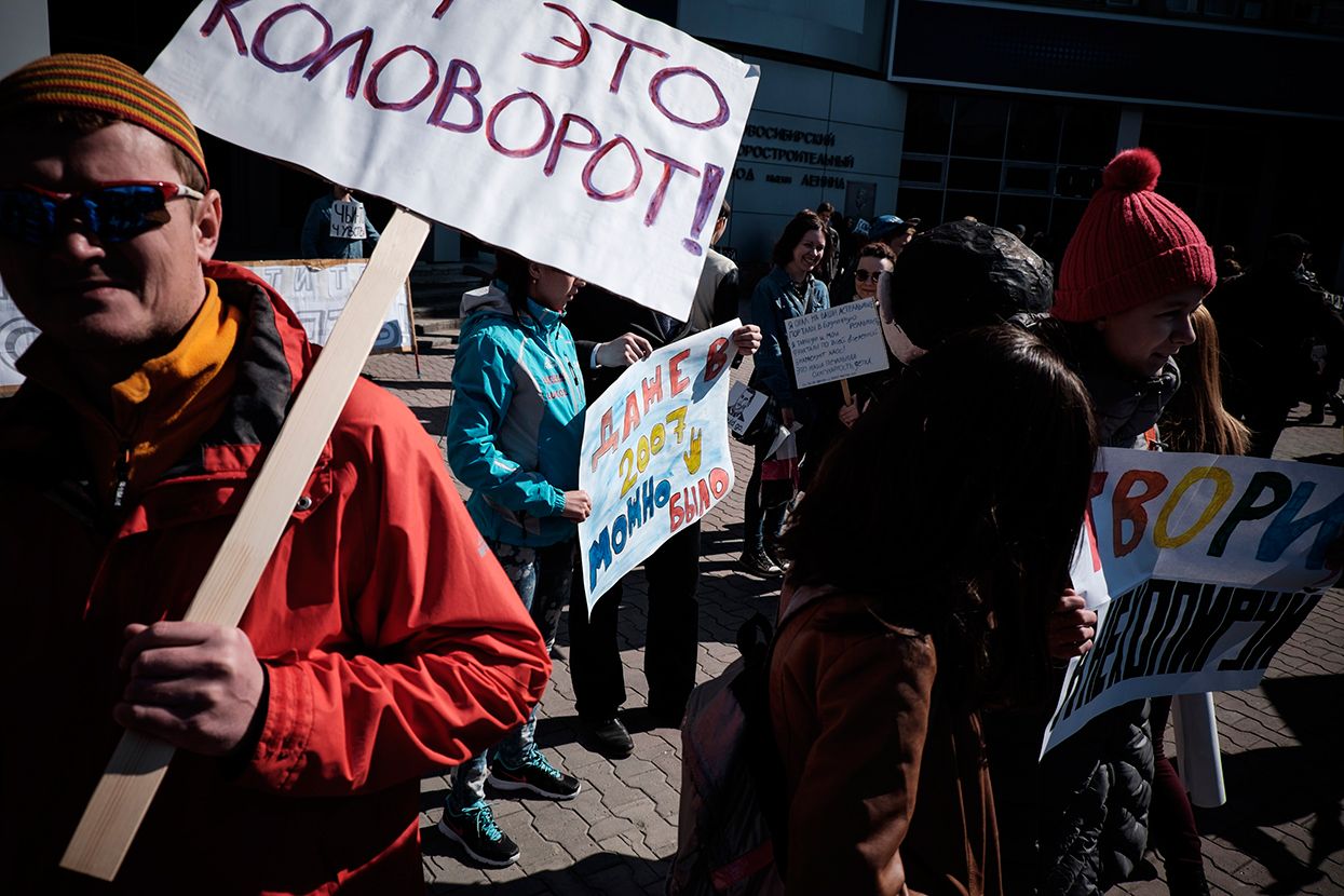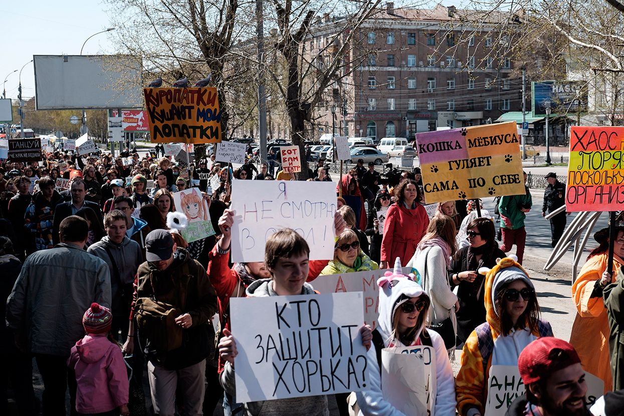 Фотограф Антон Карлинер по просьбе «Медузы» снял шествие в Новосибирске.