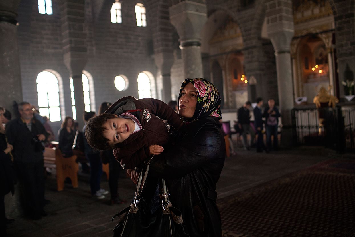 Курдка с ребенком в армянской церкви в городе Диярбакыр. Власти Турции восстановили церковь в знак налаживания отношений с христианской общиной