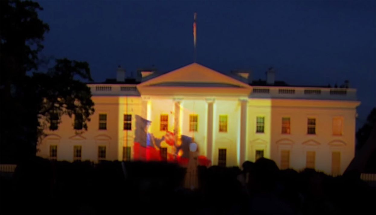 At the end of the YouTube clip, there is a link to a film festival run by a patriotic youth group created by the infamous pro-Kremlin youth organization Nashi. The film festival’s jury includes Yuri Degtyaryov, the creator of the film studio My Duck’s Vision, which projected a similar patriotic video clip onto the exterior of the US embassy in Moscow last March. Degtyaryov has refused to comment on the incident at the White House.