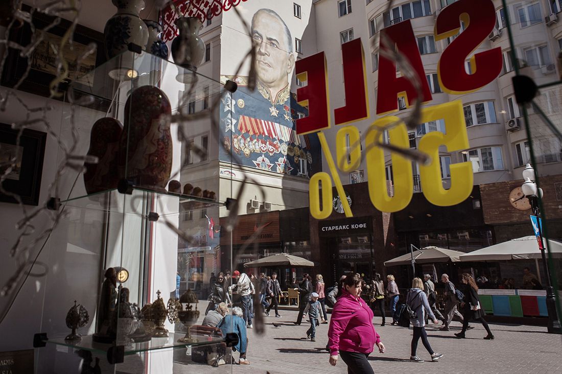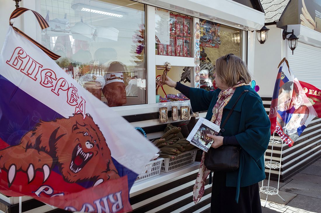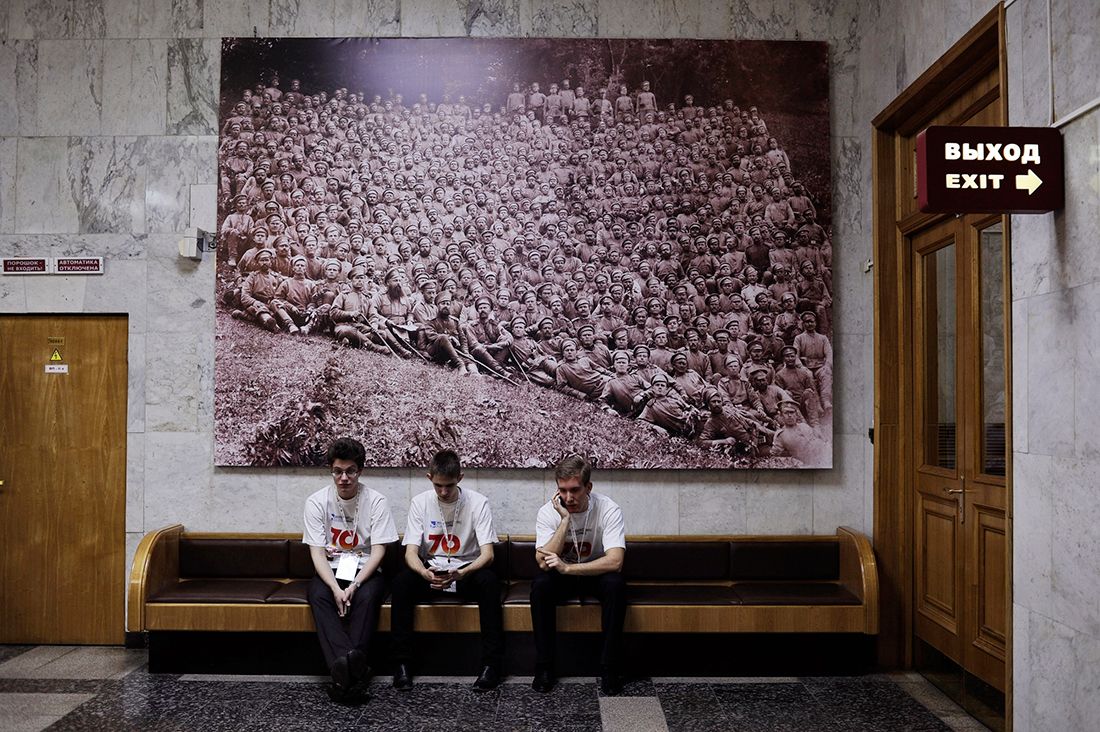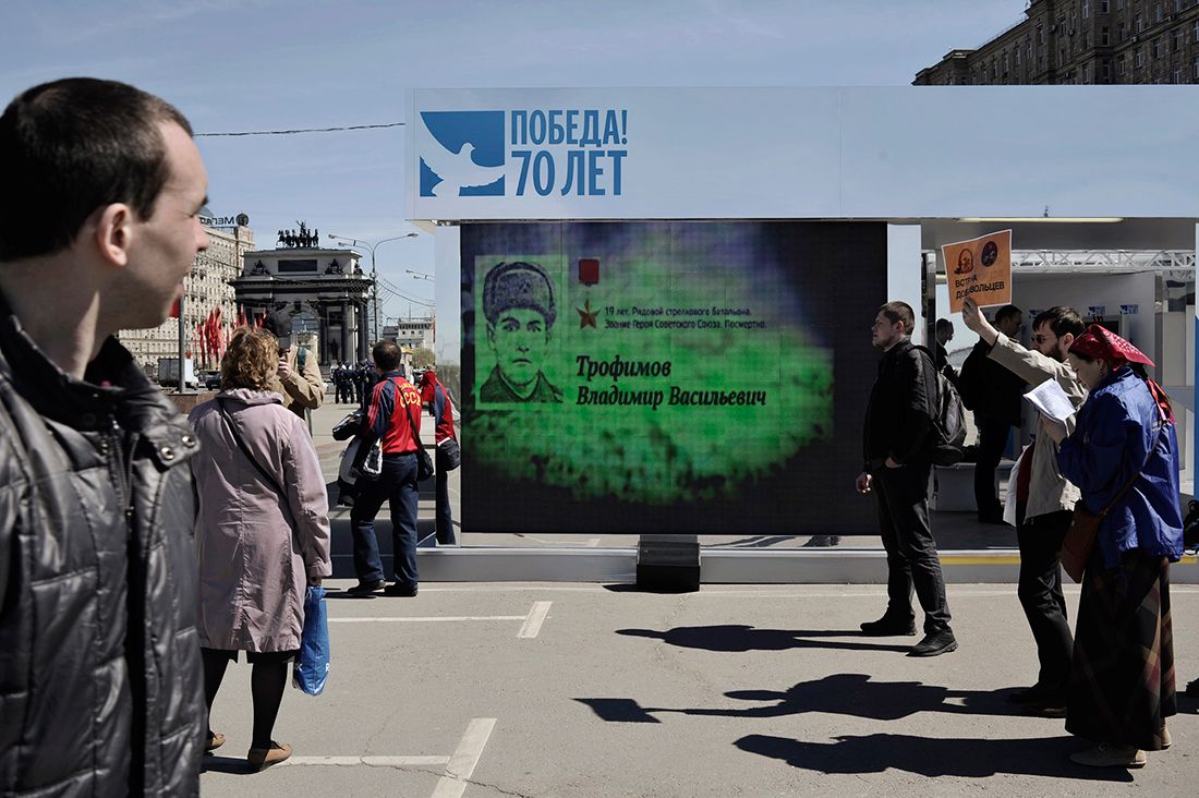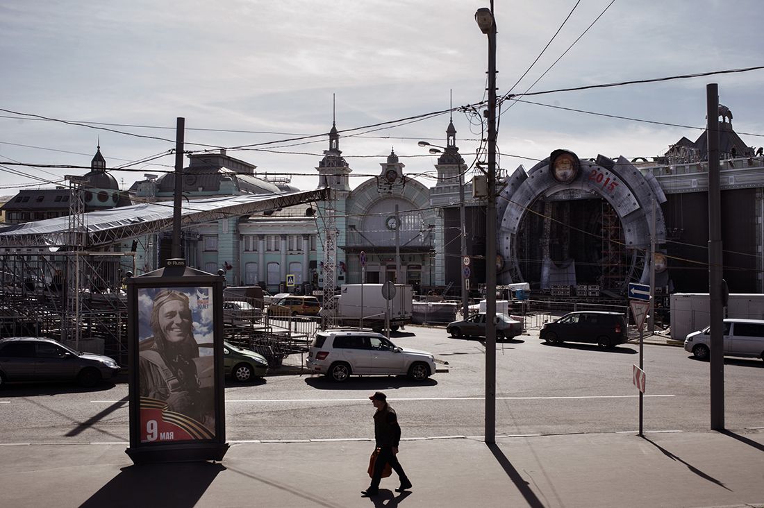 70-летняя годовщина победы в Великой Отечественной войне отмечается как главный праздник года. Георгиевские ленты, которые до 2005 года редко у кого можно было встретить, теперь повсюду — на одежде, автомобилях, даже на собаках. В цвета георгиевской ленты красят лавки, машины и все что угодно. «Медуза», впечатлившись размахом грядущего празднования, попросила фотографа Андрея Любимова посмотреть, как Москва подготовилась к 9 мая.