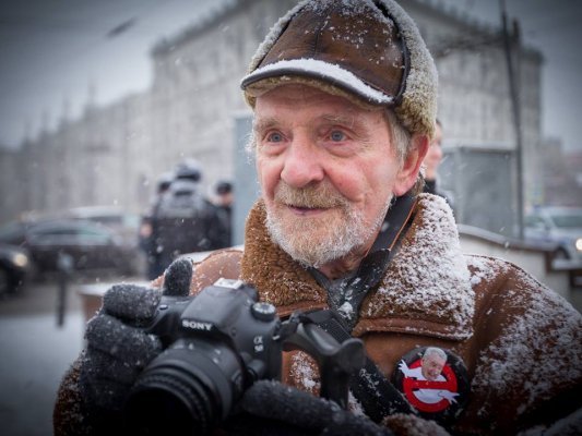 Площадь заставлена автобусами, новенькими, чтобы пяди не осталось для протестантов. Тут же дежурят автозаки, готовые к утрамбовыванию своих внутренностей. На пятачке против мостика влюбленных понемногу собираются люди, все больше пожилые. Но пока их меньше, чем ментов и омоновцев. Встречаем знакомых или знакомимся. Вот одинокий, должно быть, татарин, стоит в сторонке. Знакомимся. Ведь здесь все свои, одной крови. Оказывается, специально прилетел на митинг (заметьте, не на пикет) с Екатеринбурга. Оля Кашкарова потом рассказала, что его задержали, ночью отпустили, он тут же улетел в свой город и утром вышел на работу (она с ним созвонилась). Сергей, под 80, ходит, вибрируя — знаете, такая старческая тряска. Из шестидесятников. Не пропустил ни одного митинга. Приходим с ним к общему философическому заключению: мол, в России все течет, и ничего не меняется. Саша, обвешанный фотоаппаратами, старый знакомый. Говорит, если все заснятые им снимки и видео сложить в один ряд, то ими можно обмотать экватор, но эта его работа напоминает ему сизифов труд. Я задумался и пришел к выводу, что это тоже философическое заключение.