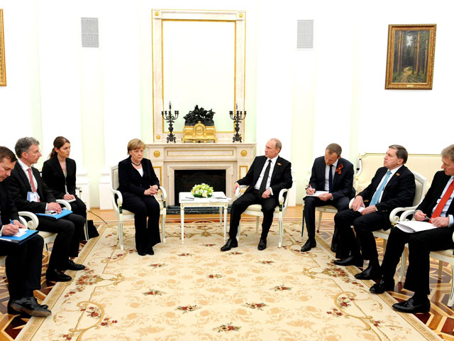 Меркель на совместной пресс-конференции выразила уверенность, что в реализации минских договоренностей можно достичь прогресса. ФРГ готова продолжать работу в данном направлении, подтвердила она. Также Канцлер еще раз подчеркнула причину своего визата в Москву: важно воздать дань памяти миллионам погибших, а также показать, что Германия работает вместе с Россией, а не против нее.