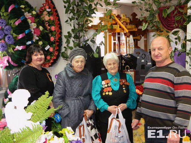 На улицах городов появились поздравительные баннеры — нередко на них размещали фотографии довольных фашистов; производители всего — от тапочек до водки — выпускали «праздничные» серии продуктов, а продавцы устраивали «праздничные» распродажи в честь 9 мая. Иркутских нерп научили носить береты и автоматы и исполнять «военно-патриотическую» программу, а в Екатеринбурге похоронное бюро умудрилось устроить чаепитие с ветеранами в окружении гробов и венков.