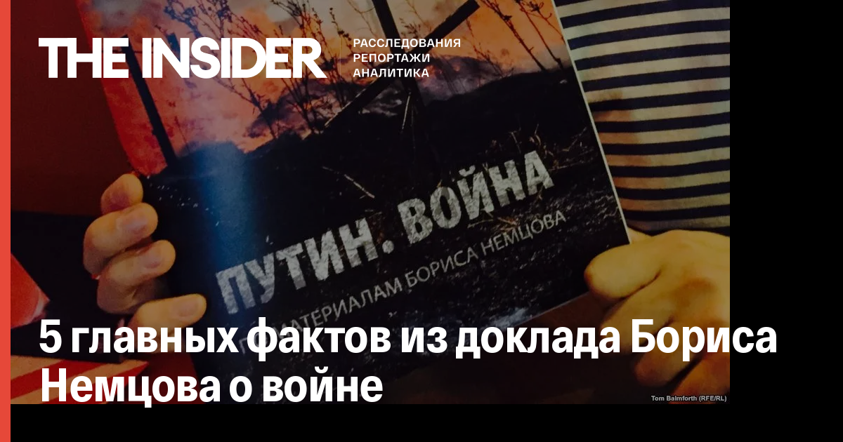 Партия РПР-Парная представила общественности доклад «Путин. Война», над которым незадолго до гибели начал работать Борис Немцов и который мог стать причиной убийства политика. The Insider публикует наиболее важные выдержки из доклада.