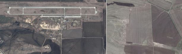 Слева: военный аэродром в Миллерово, предположительный пункт назначения июньской колонны. Справа: военный лагерь к югу от Каменск-Шахтинского, конечная точка июльской колонны: