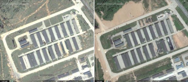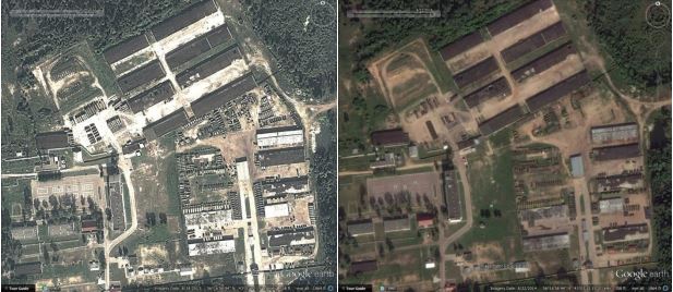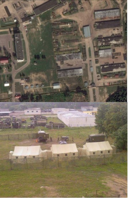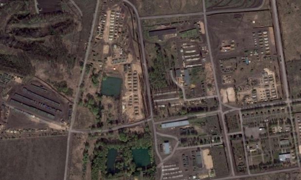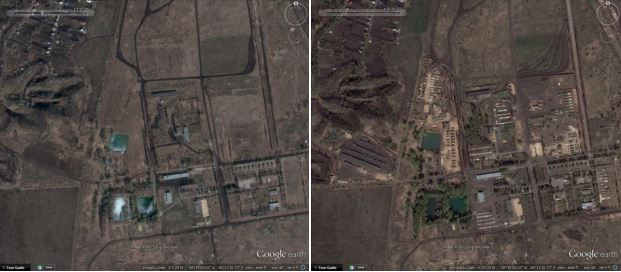 Спутниковые снимки этой местности, сделанные в августе 2014 года, также показывают наличие большого военного лагеря: