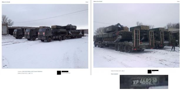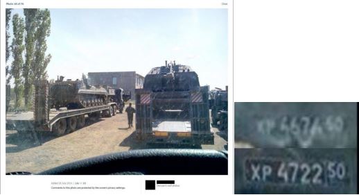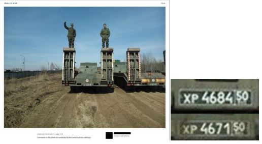 Фотографии в сообществе также указывают на его причастность к транспортировке "Буков". На фото, загруженном 22 марта 2014 года с географической меткой "Курск, ул. Карла Маркса", видны три "КамАЗа" с прицепами и погруженной на них техникой, в том числе с номером "312" на борту. Справа – фотография этих же "КамАЗов" (снова видим на прицепе технику с номером "312"). Главное отличие правой фотографии от левой в том, что на ней различим номер прицепа – XP4682 50.
