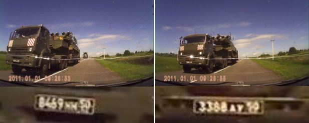 Колонны с военной техникой, в которых были ракетные системы "Бук", попадали в поле зрения очевидцев дважды – 23-25 июня 2014 года, когда техника ехала в сторону Ростовской области из Курска, и 19-21 июля, когда они двигалась примерно таким же маршрутом. Мы сохранили изображения всех номерных знаков на этих фото и выяснили, что три из них присутствуют и в июньской, и в июльской колоннах. Особое внимание было уделено номерным знакам на тягаче, который перевозил тот самый "Бук" с номером 3Х2 – именно его несколько раз сфотографировали очевидцы на украинской территории.