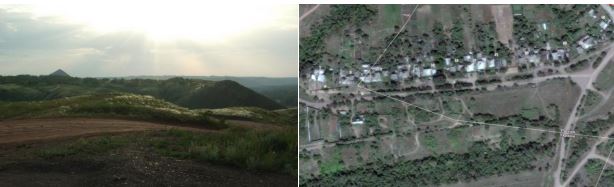 Слева – стела на въезде в Митякинскую, справа – поле около станицы.