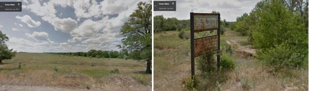 Если развернуть вид на снимках Google на 180 градусов, видны два знака. Один из них – знак, обозначающий границы городской черты Богучара.