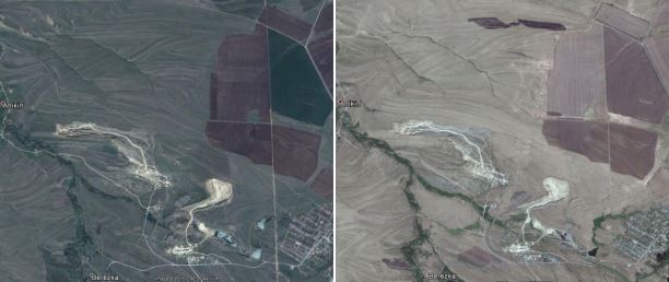 Если посмотреть снимки из-под Белгорода, сделанные в разное время, можно увидеть, что военные тягачи появились здесь только в апреле 2014 года. Похожая картина наблюдается на снимках части 11385-2 в Калининце – здесь техника появилась между маем и июлем 2014-го, а также на снимках части 11385 в Новосмолинском (Мулино) – сюда тягачи с прицепами приехали между мартом и апрелем того же года.