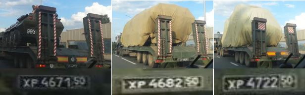 На видео июльской колонны, загруженном в сеть 20 июля и снятом, как мы вычислили, в селе Федосеевка около Старого Оскола, видны три номерных знака прицепов с "Буками" – XP4671 50, XP4682 50 и ХР4722 50.