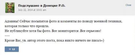В сообществе "Подслушано в Донецке Р.О. (Ростовской области)" 22 июля была размещена запись, в которой администратор группы просит ее участников не публиковать фотографий и видео техники, "которая только что прошла" через город. Неизвестно, был ли в составе той колонны "Бук", который за 4 дня до этого вернулся из Донецкой области Украины в Верхнюю Ореховку, однако очевидно, что маршрут "Северный / Верхняя Ореховка – Донецк (Ростовская область) – Миллерово" часто использовался военными: