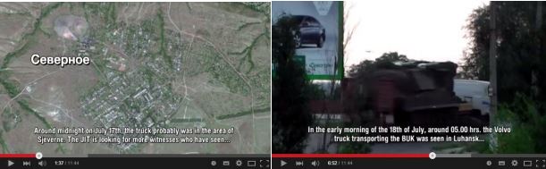 На видео, опубликованном Объединенной группой, расследующей катастрофу "Боинга", "Бук" запечатлен в ночь на 17 июля в украинском пограничном поселке Северный, а в 5 утра 18 июля – в Луганске, двигающимся обратно. По данным СБУ Украины, в Луганске на обратном пути "Бук" был около 2 часов ночи 18 июля, тягач с ним ехал в направлении Северного и граничащей с ним российской Верхней Ореховки. Там, согласно данным украинской стороны, они пересекли границу в обратном направлении, причем на одной из установок был полный комплект из 4 ракет, а на другой – только 3.