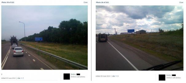 В распоряжении Bellingcat нет снимков, на которых было бы видно "Бук" №3Х2 следующим с военной базы на аэродроме в Миллерово в Верхнюю Ореховку через российский Донецк. В то же время, в альбоме пользователя "ВКонтакте" Дмитрия З. есть множество фотографий другой техники, следующей таким маршрутом. Для этого, если судить по снимкам Дмитрия З., обычно использовалась трасса М4 – окольный путь через села Красновка и Зеленовка занял бы в 4 раза больше времени.